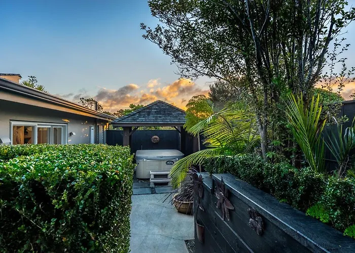 Ubicada a 6 km del Estadio North Harbour, la villa Private Luxury Waterfront Spa Villa Auckland es una propiedad de 4 dormitorios con una terraza. La villa cuenta con un patio, un vestidor y un sofá en las habitaciones, junto con una cocina bien equipada.